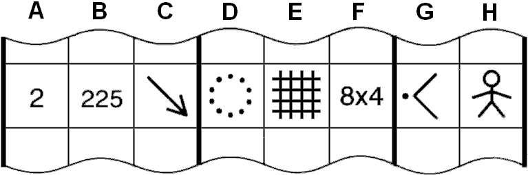 Categorias de símbolos: Coluna D ( Relevo | Rochas e pedras | Água e pântanos | Vegetação | Elementos construídos | Elementos especiais ) | Coluna C | Coluna E | Coluna F | Coluna G | Coluna H | Informações diversas